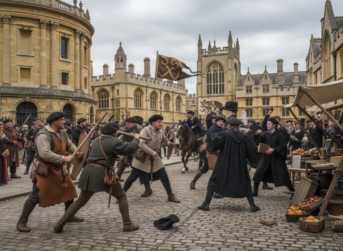 Amid riots in the city some scholars fled for their lives, setting up Cambridge University as a safe haven.